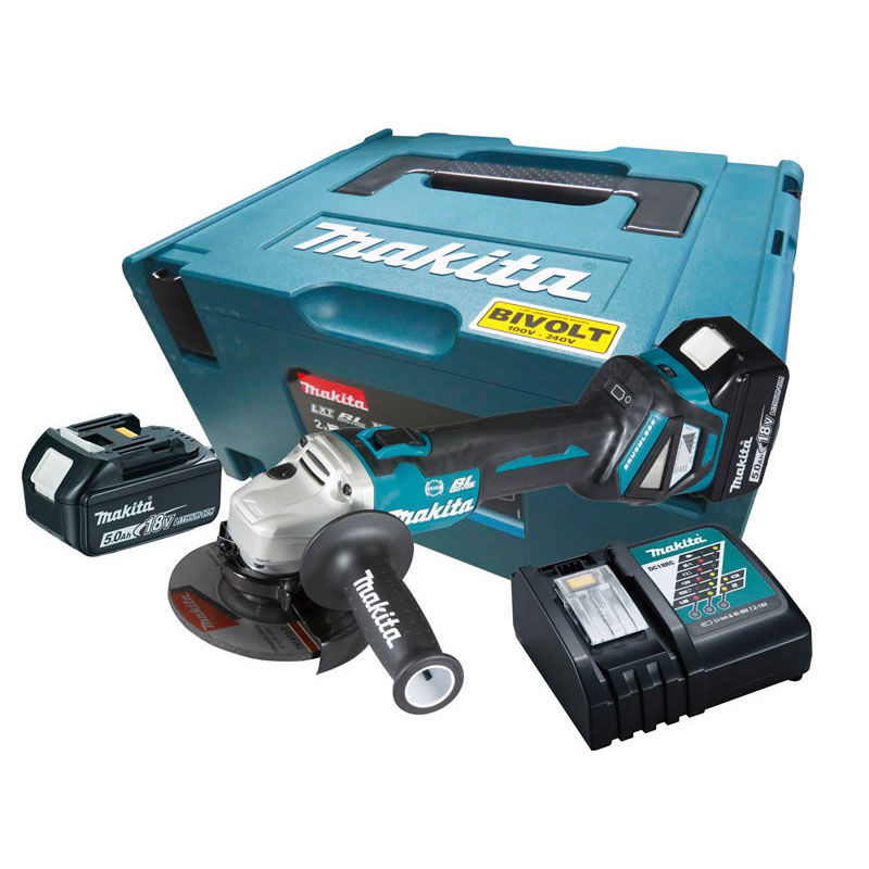 2 baterias 18V 5,0 Ah, carregador rápido, punho lateral e Mak-pac N°3.
