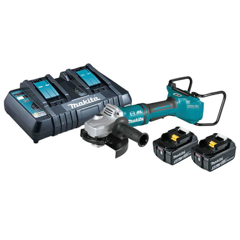 2 baterias 18V 5,0 Ah, carregador duplo rápido e maleta.